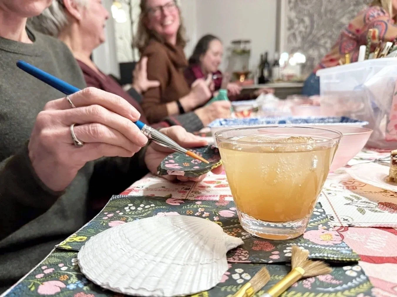 A Sip n’ Shell is The Seashell Society’s signature experience. It’s a relaxed, seated gathering where guests sip, socialize, and create beautiful coastal-inspired keepsakes together.